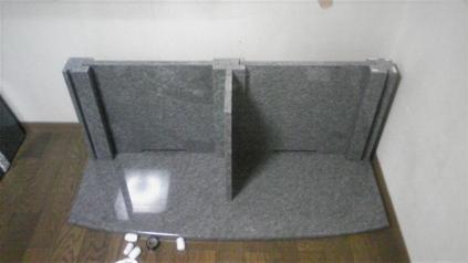 【作品概略】 使用石材:庵治石 細目特上品 幅は約115cm 高さは約50cm 重さは不明ですが、上下天板でも大人二人掛りであれば十分持ち上げることが可能です。また、接着にはクッション性のある両面テープと石材用のシリコン接着剤を使用しております。
